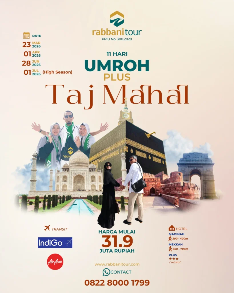 Program Umroh plus Taj Mahal menjadi pilihan favorit karena memadukan ibadah Umroh dengan wisata sejarah Islam kelas dunia. Program ini